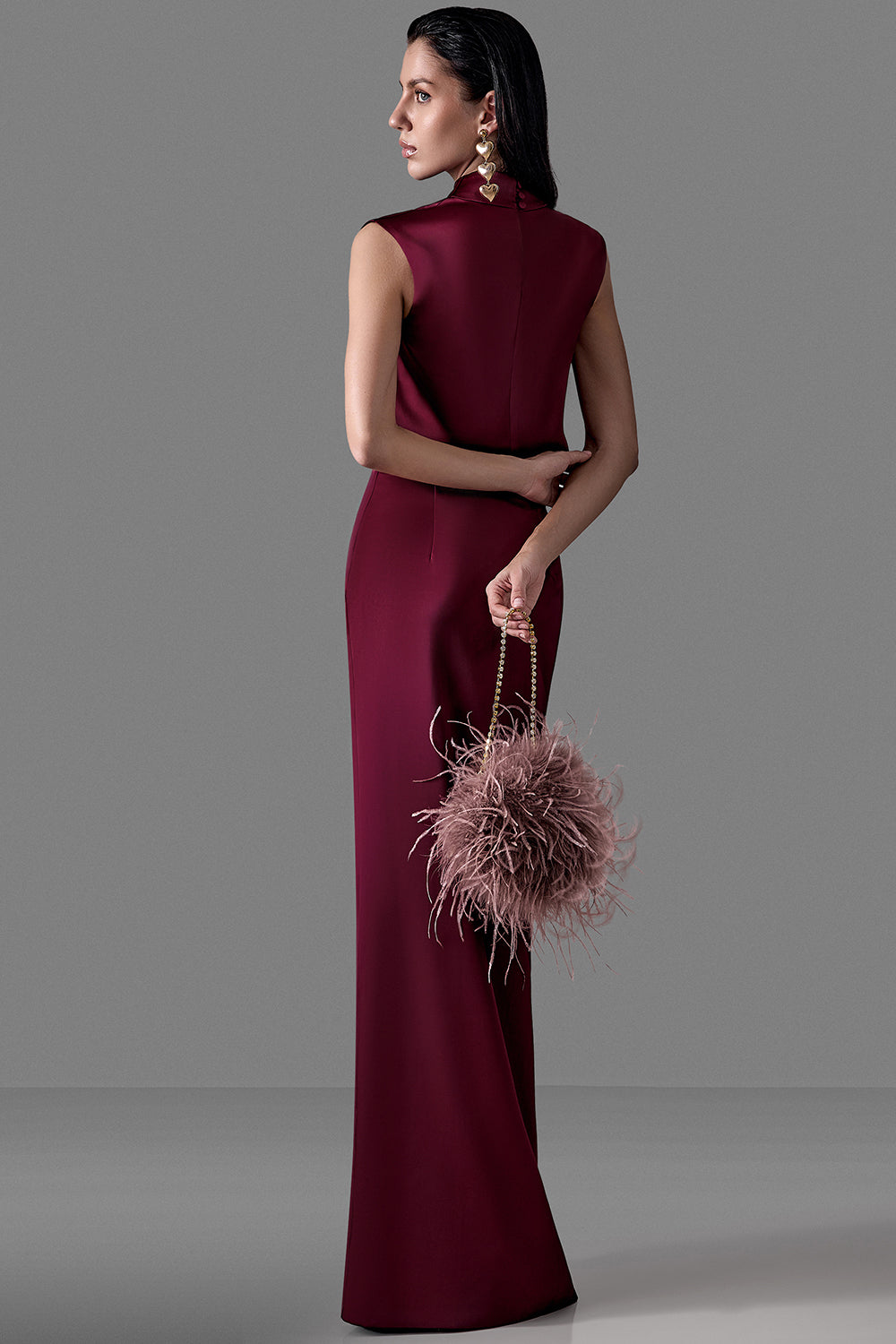 This luxurious evening bag is adorned with natural ostrich feathers, creating a soft, voluminous texture that instantly elevates any outfit. The compact silhouette is complemented by a refined chain handle and a secure magnetic closure, offering both elegance and practicality. A standout accessory for special events, it adds a touch of couture glamour to any look.