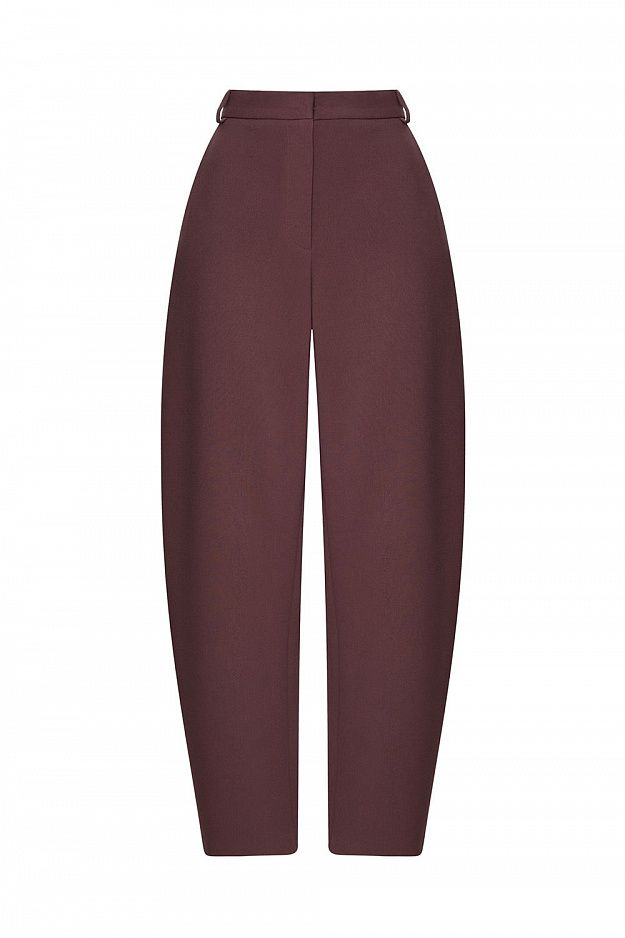 These high-waisted banana pants feature soft volume at the hips. The silhouette tapers smoothly toward the bottom, creating a neat leg line and accentuating the waist. The minimalist design makes these pants a staple for everyday and office wear.