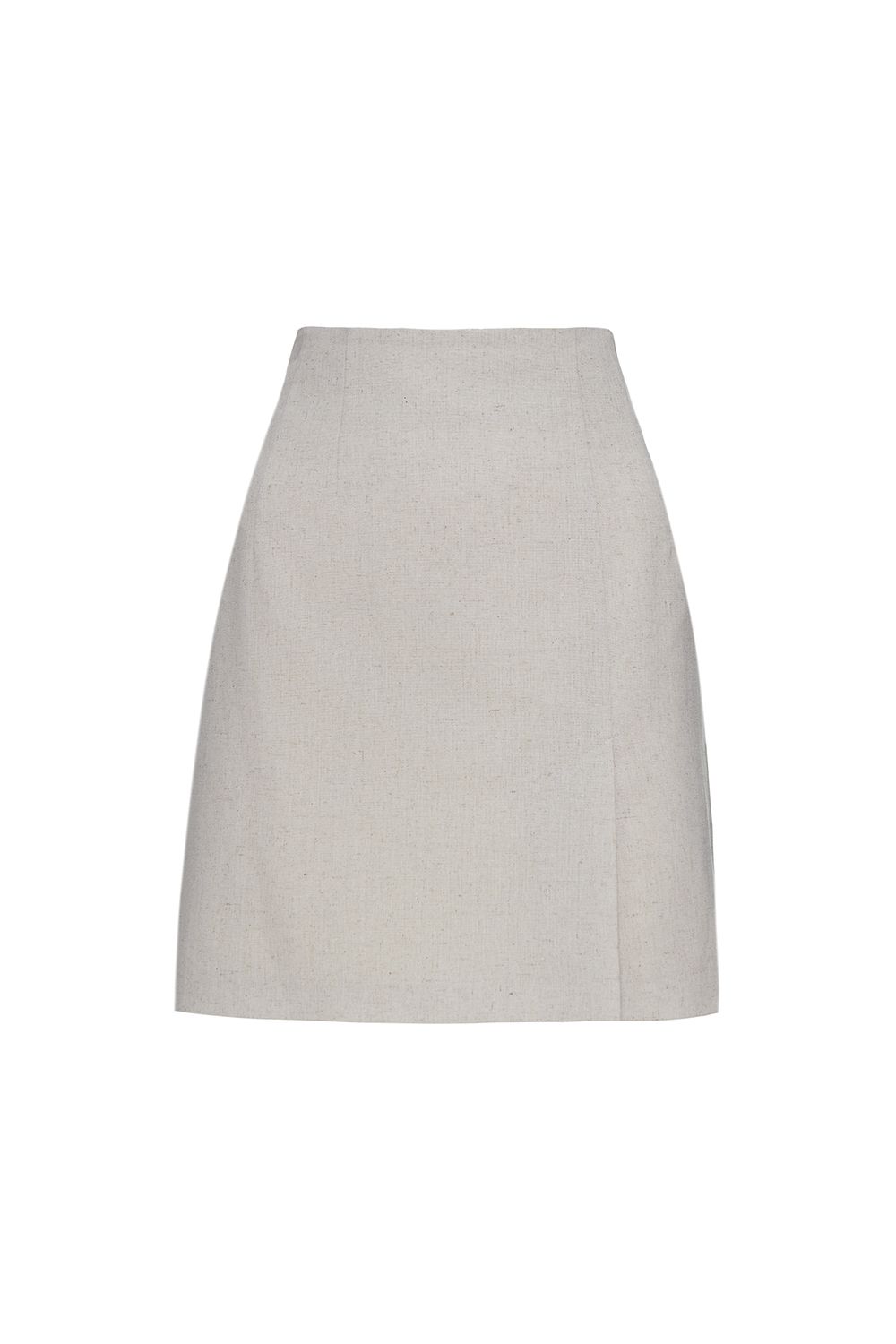 Mini-flax from mixed linen. The product with a high landing, fastened with a hidden zipper behind. The length is 43 cm.